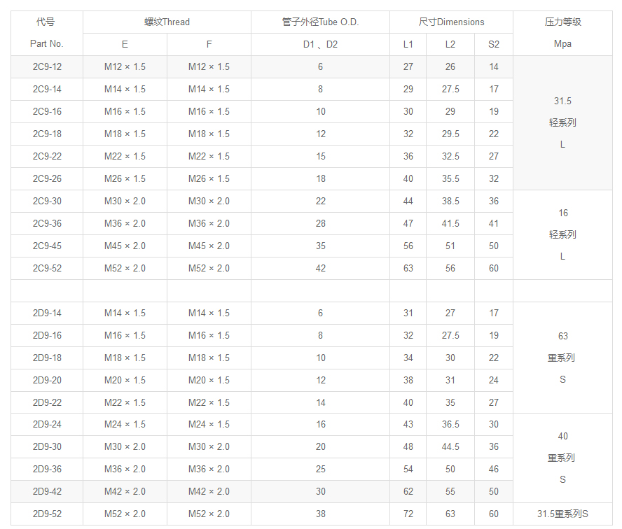16711美制JIC外螺紋74°外錐面系列