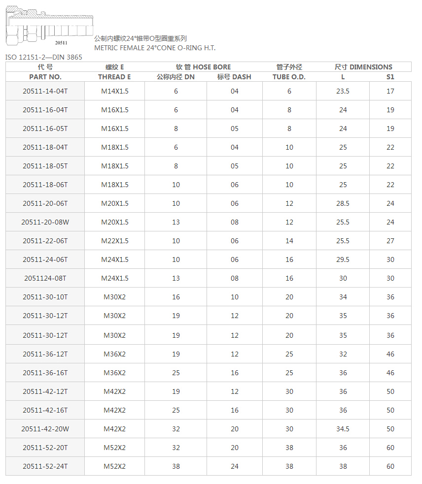 20511公制內螺紋24°錐O重系列